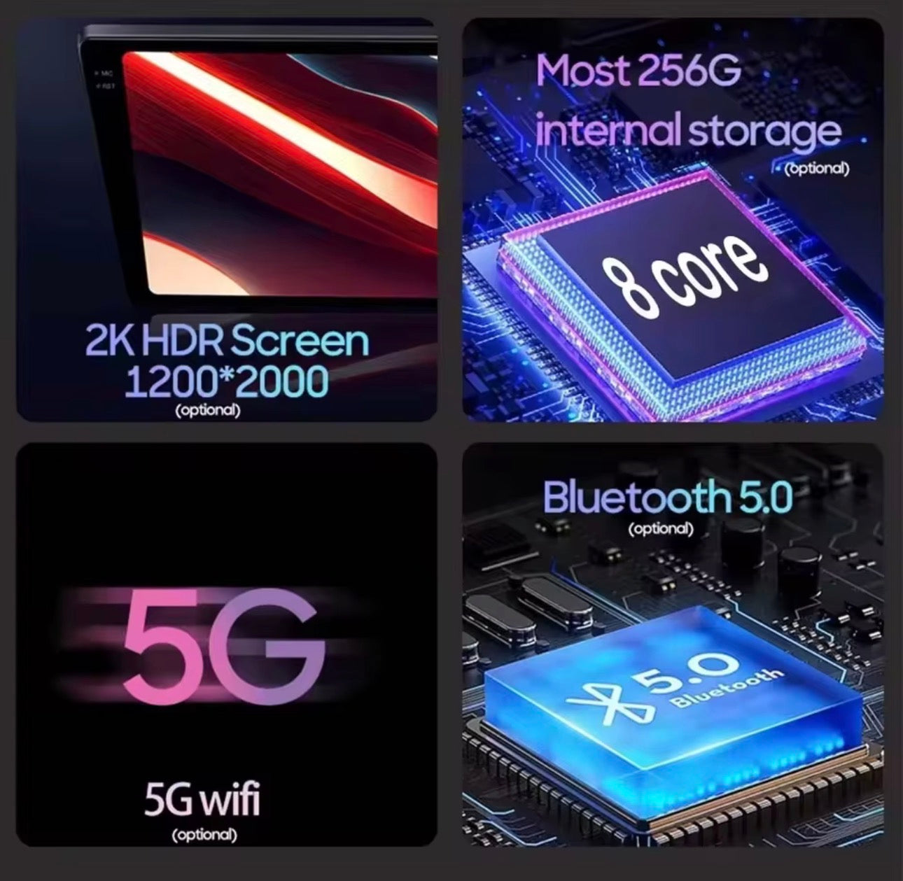 Version HDR 2000x1200 (2K) sur les modèles 256 Go pour une qualité d’image exceptionnelle.